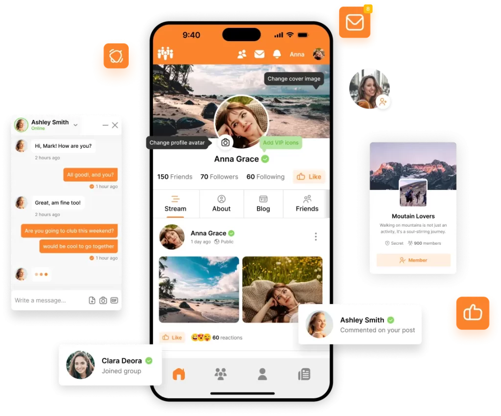 このようなものがありますが、様々な統合、機能拡張を省き、シンプルにPeepSoのみで構築した場合のサービスになります。